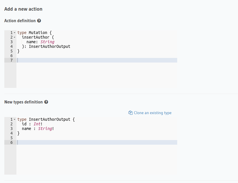 hasura actions create insertAuthor --derive-from 'mutation insertAuthor($name: String) {
