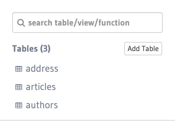 If you now open the console of the new instance, you can see that the three tables have been created and are tracked: